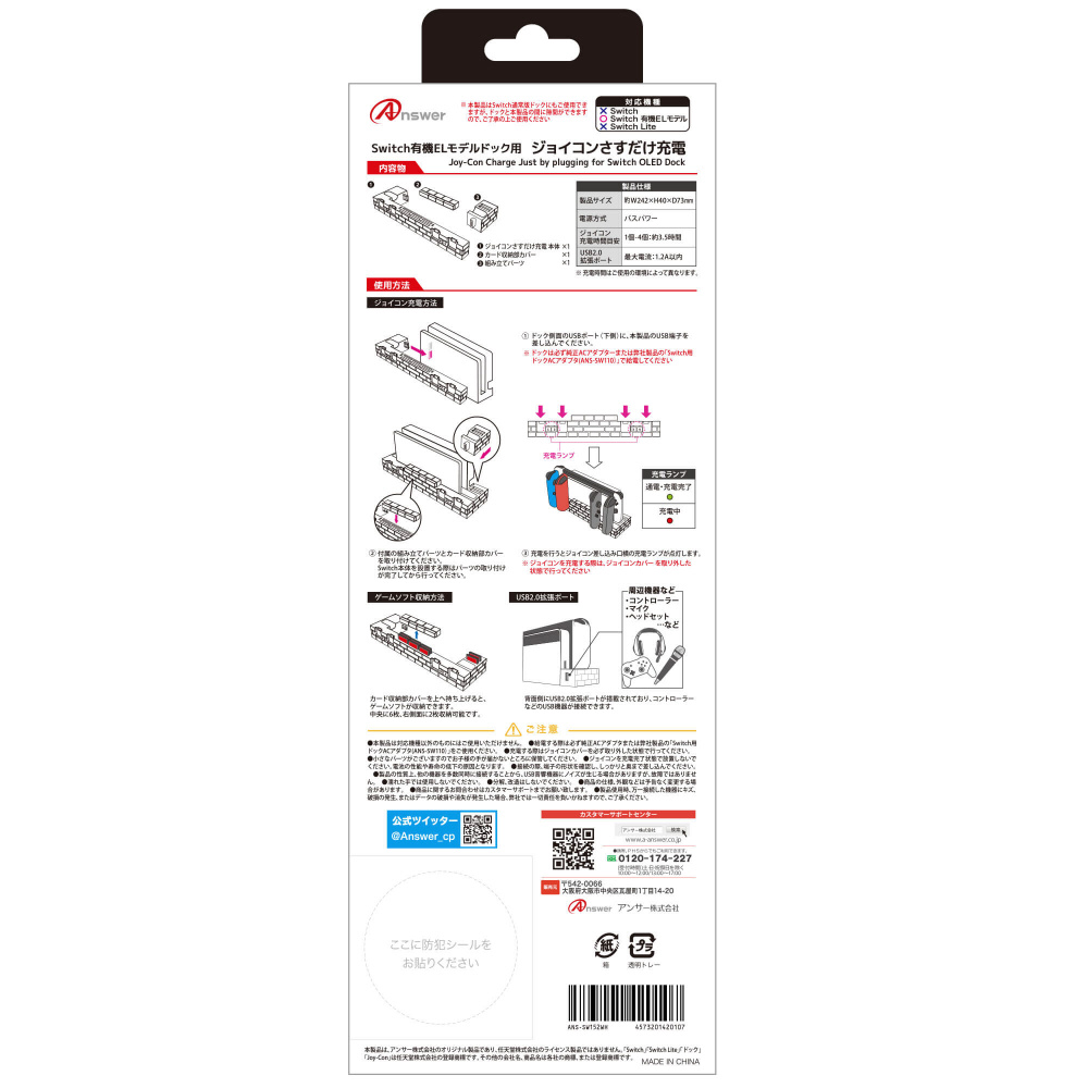 | 商品名 | Switch有機ELモデルドック用 ジョイコンさすだけ充電 |