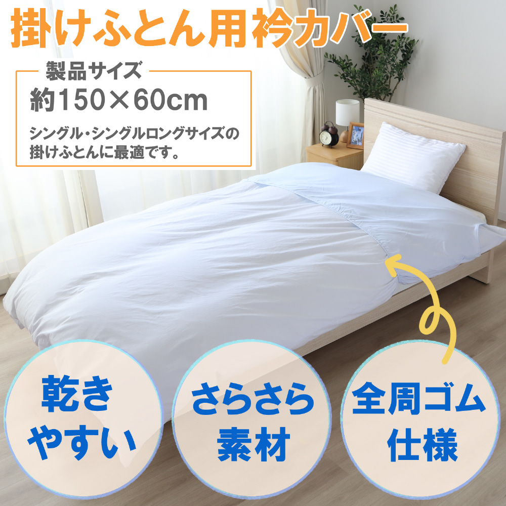 メリーナイト 衿カバー 平織 ホワイト 約150×60cm ( シングル・シングルロングサイズの掛け布団に最適 )全周ゴム仕様 さらさら素材 洗える 速乾 シワになりにくい EK1520-06 ホワイト EK1520-06