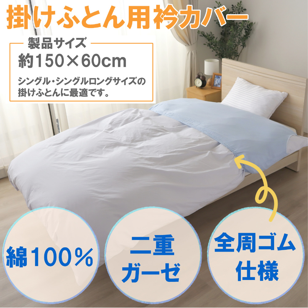 メリーナイト 衿カバー 2重ガーゼ ブルー 約150×60cm ( シングル・シングルロングサイズの掛け布団に最適 )全周ゴム仕様 綿100% ふんわりやさしい肌ざわり 洗える EK1521-76 ブルー EK1521-76 [シングルサイズ]