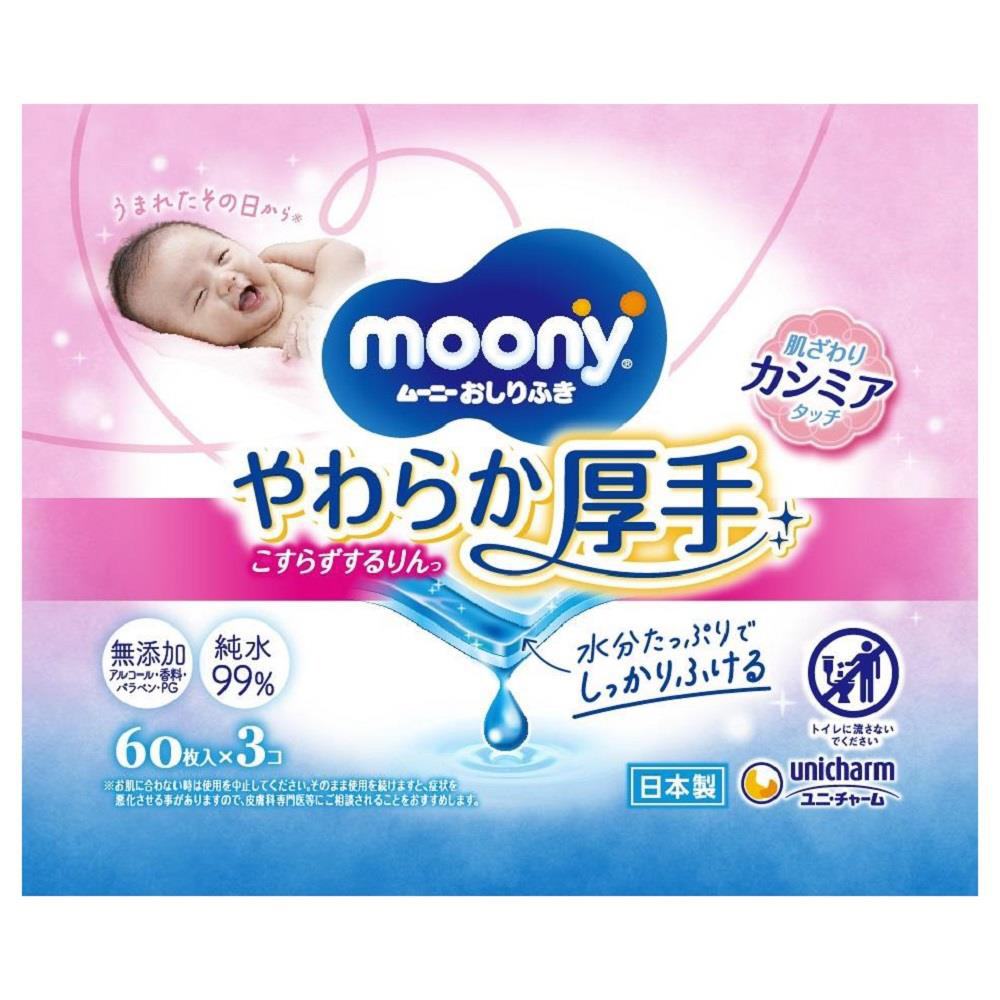 おしりふき やわらか厚手 つめかえ用 60枚入×3コ(180枚) moony(ムーニー)