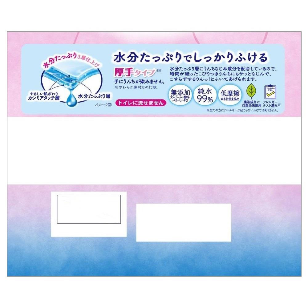 ・水分たっぷり層にうんちなじみ成分を配合しているので、時間が経ったこびりつきうんちにもサッとなじんで、こすらずするりんっ!とふいてあげられます。