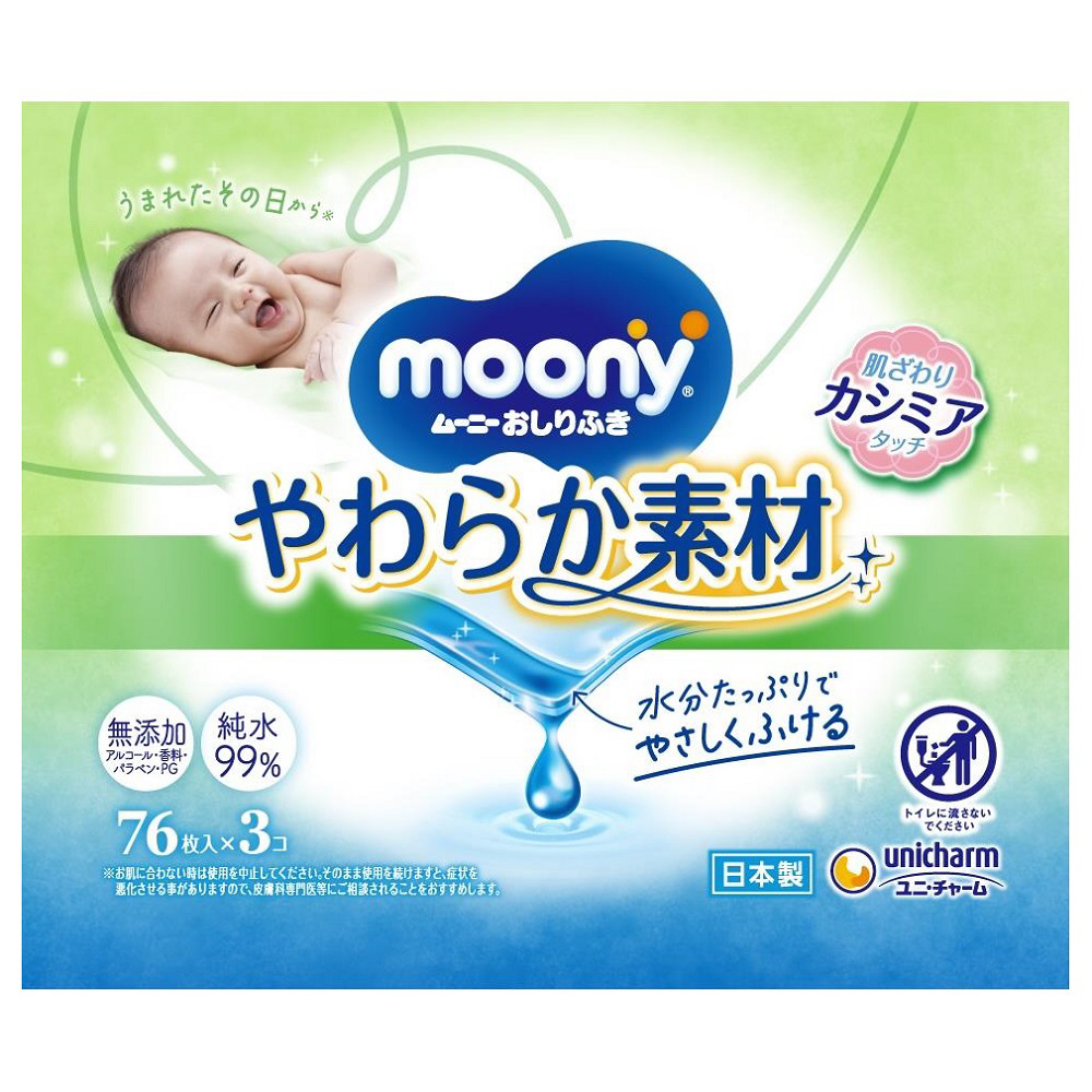 おしりふき やわらか素材 つめかえ用 76枚×3コ(228枚) moony(ムーニー)