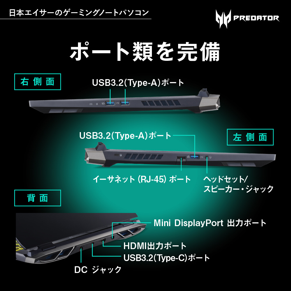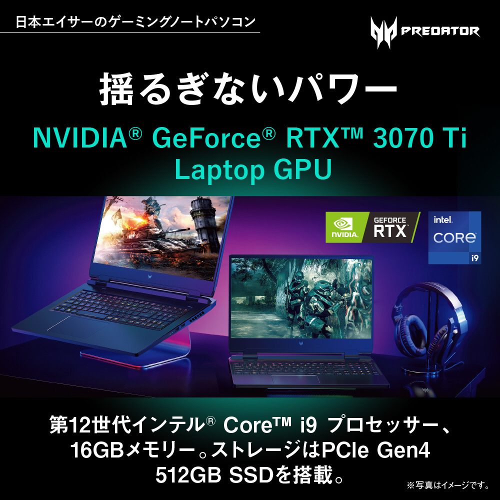 ノートパソコン Predator Helios 300 アビサルブラック PH315-55-A96Y7T [15.6型 /Windows11 Home /intel Core i9 /メモリ:16GB /SSD:512GB /無し /英語版キーボード /2022年11月モデル]