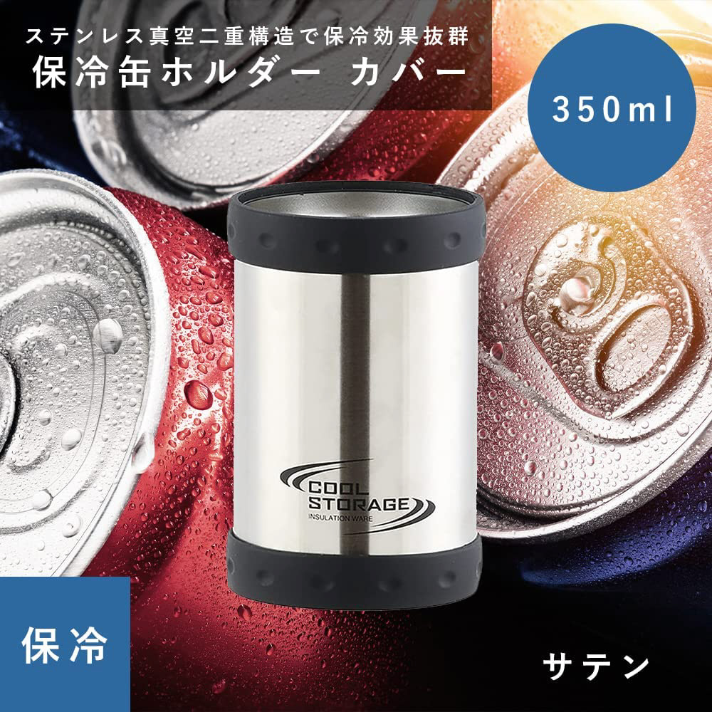 350mlの缶飲料がそのまま入る!保冷缶ホルダー!缶ジュースや缶ビールがすっぽり入ります。ステンレス真空二重構造で保冷効果抜群。野外や車内でぬるくなりやすい缶飲料を、冷たいまま持ち運べます。