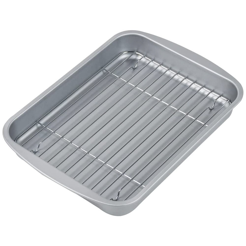 バットはふっ素樹脂加工でお手入れも簡単!油切りに便利なアミ付きです。