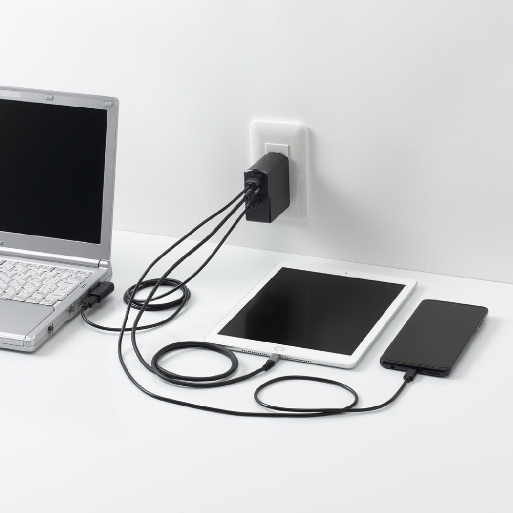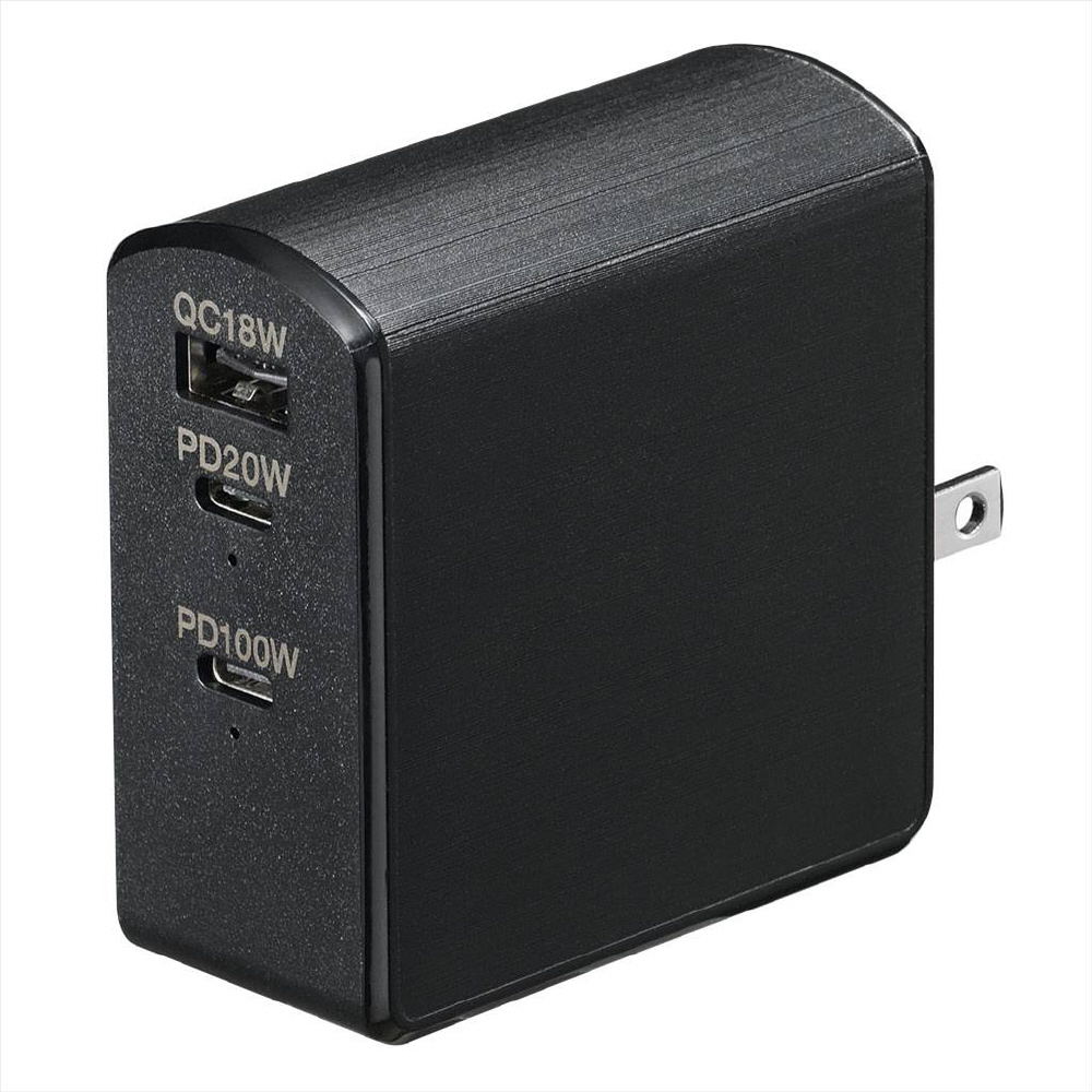 AC-USB充電器 ノートパソコン・タブレットPC対応 105W [3ポート:USB-Cx2+USB-A /USB Power Delivery対応 /Quick Charge対応] ブラック VFPD105BK