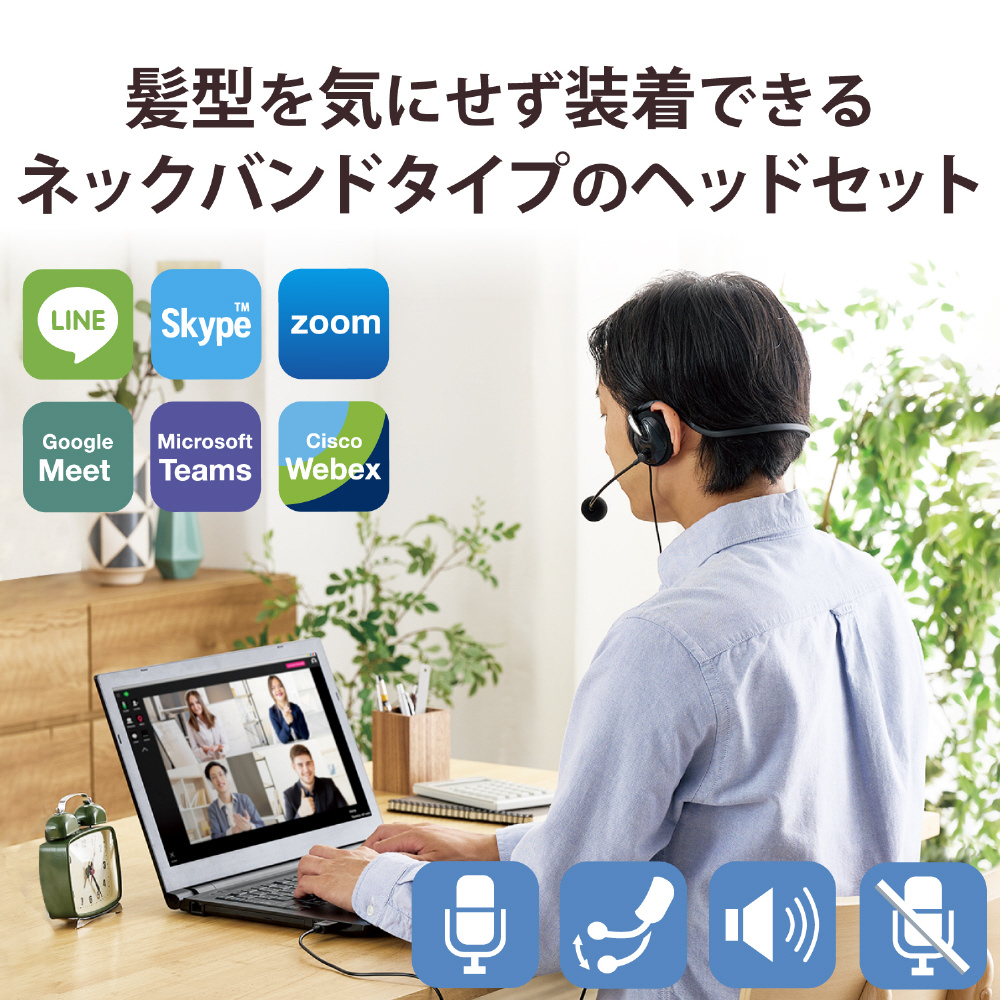 オンラインゲーム、Web会議、音声チャットに最適!髪型を気にせず気軽に装着できるUSB-A端子を搭載したネックバンドタイプのヘッドセット。