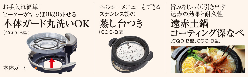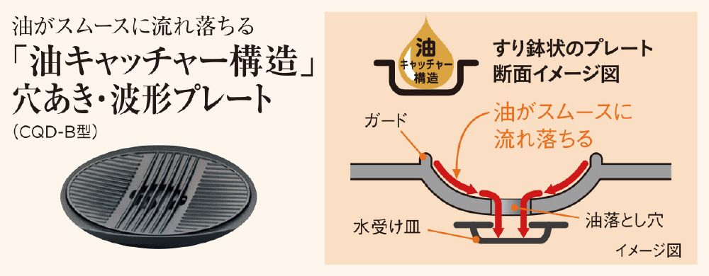 遠赤効果で素材本来の味を引き出し、油の飛び散りを抑える構造で、お手入れも簡単。