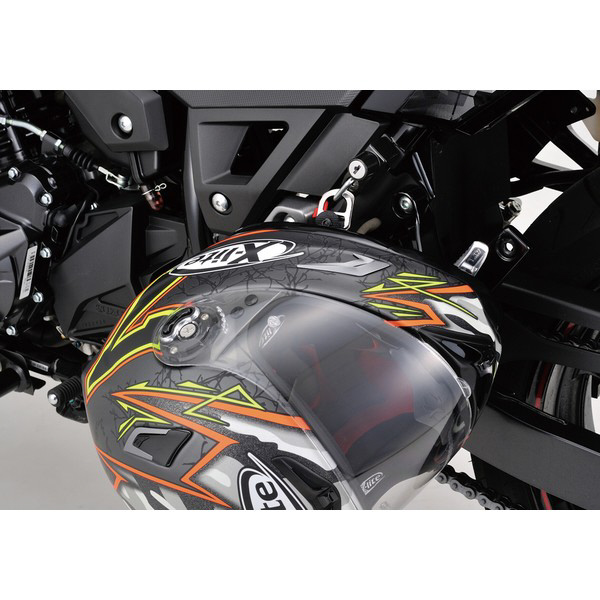 ※駐車中のヘルメットの盗難を抑止する商品です。ホルダーにヘルメットを装着したままの走行は危険ですのでお止めください。
