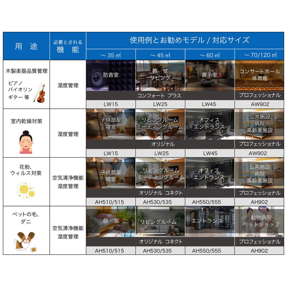 月に回ほど、タンクの水を交換するだけで、湿度を40%~60%に保ち、空気環境を保ちやすくします。