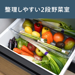 野菜室は、中身の整理がしやすい2段引き出し式。