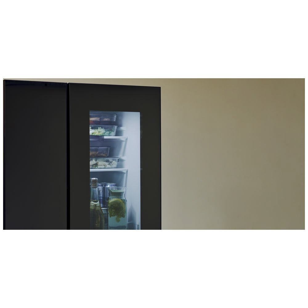 ■ドアについたセンサーに軽く触れると、ハーフミラーが透けて、開けずに庫内が確認できます。