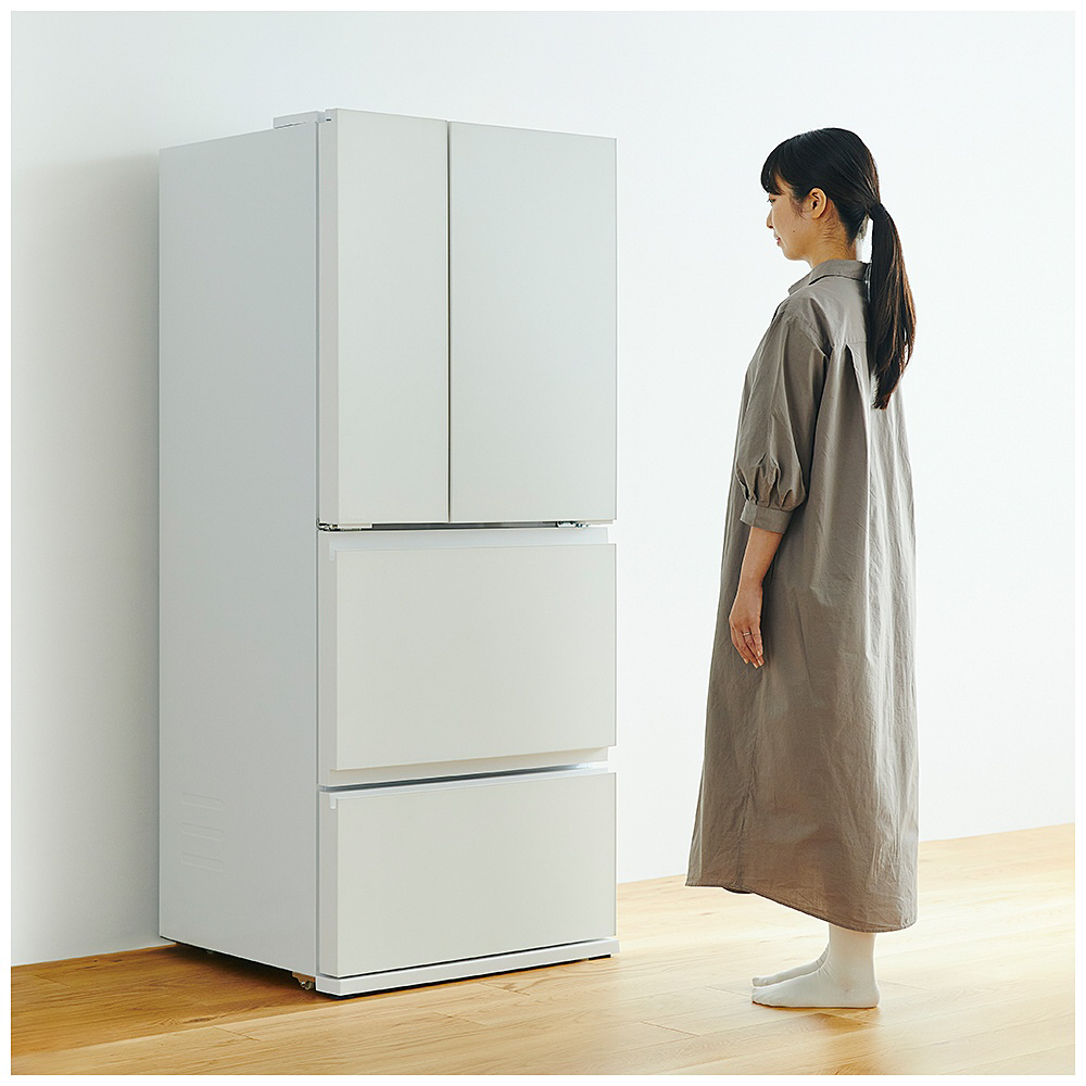 「4ドア冷凍冷蔵庫」は、すべての寸法を人のからだのサイズに合わせて設計した、あたらしいかたちの冷蔵庫です。暮らしの中で気持ちよく使えることをいちばんに考えました。