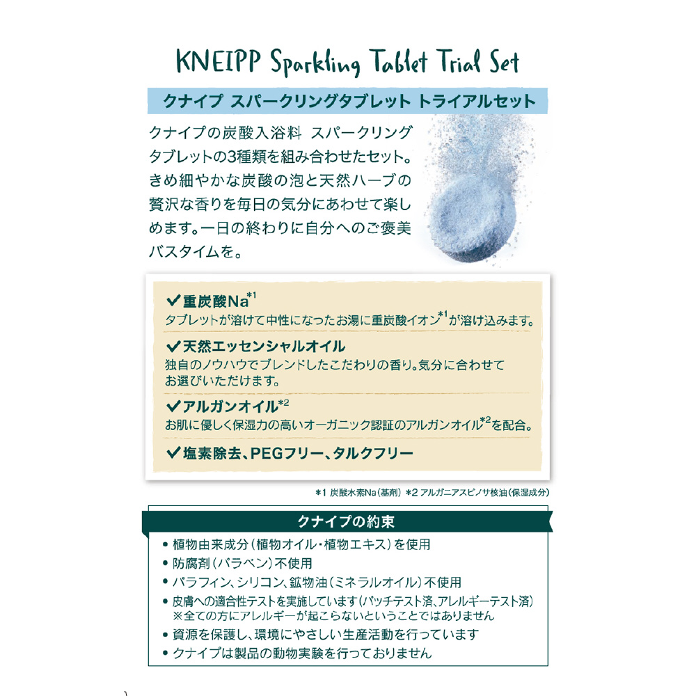 クナイプの炭酸入浴料 スパークリングタブレットの3種類を組み合わせたセット。