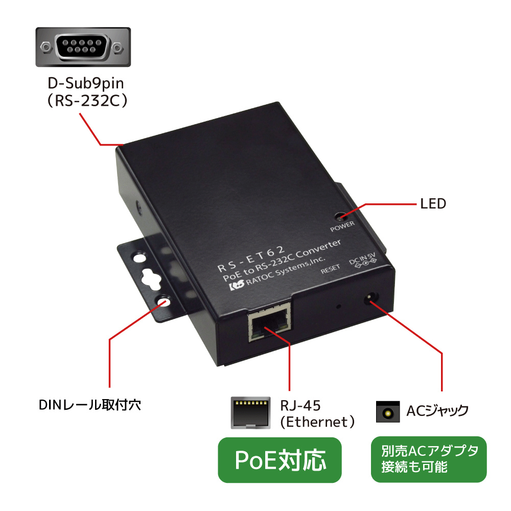商品名 コンバーター PoE to RS-232C (Windows11対応) RS-ET62