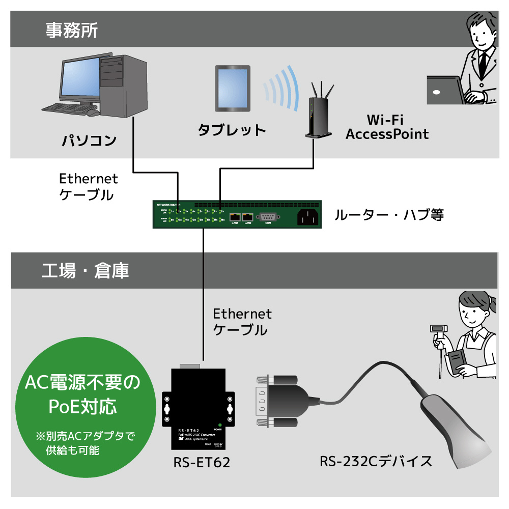 コンバーター PoE to RS-232C (Windows11対応) RS-ET62