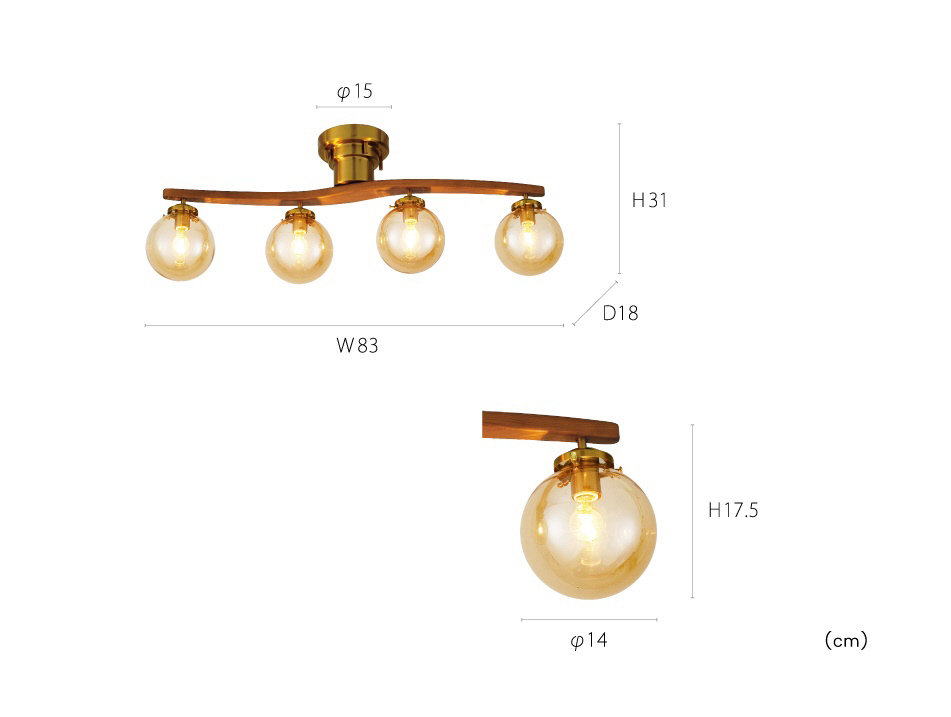 シーリングライト 電球別売品(口金E17 小型電球×4灯使用可能)