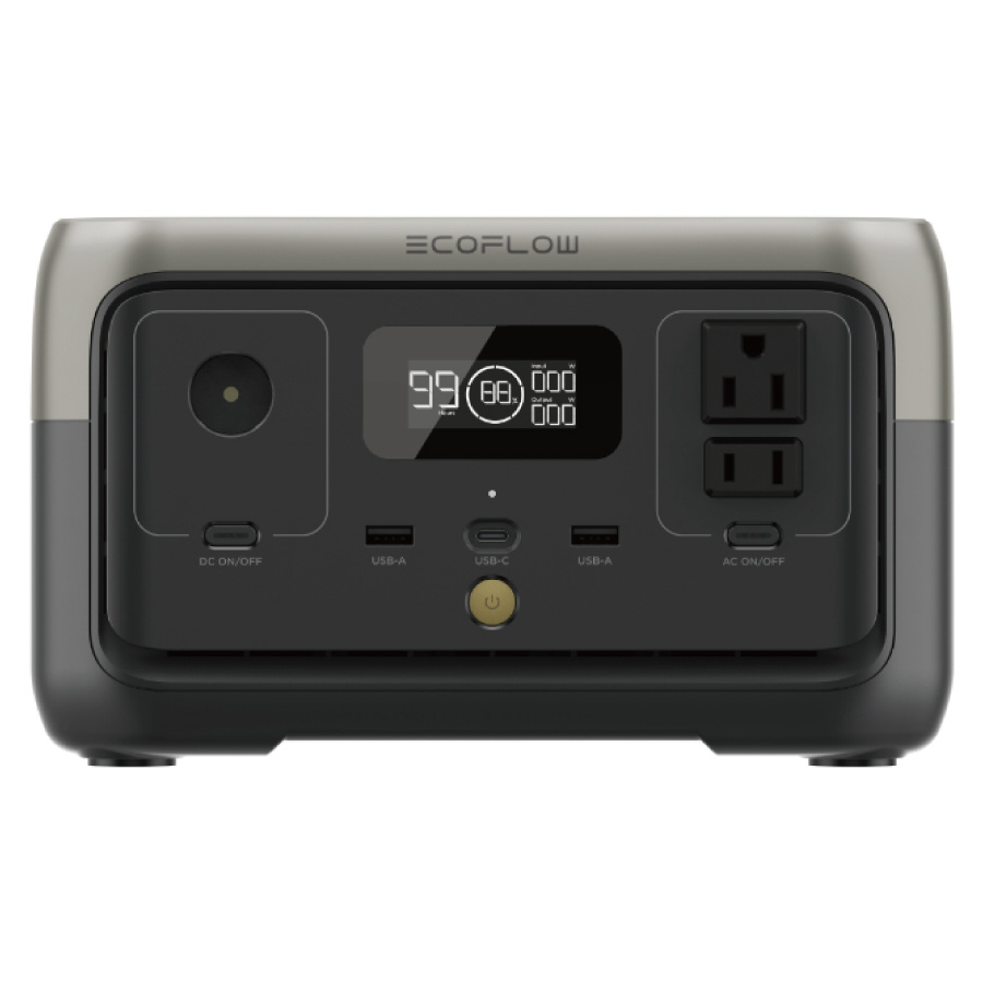 RIVER 2は、バッテリー容量256Whのパワフルなポータブル電源です。AC2口・USB-A2口・USB-C1口・シガーソケット1口