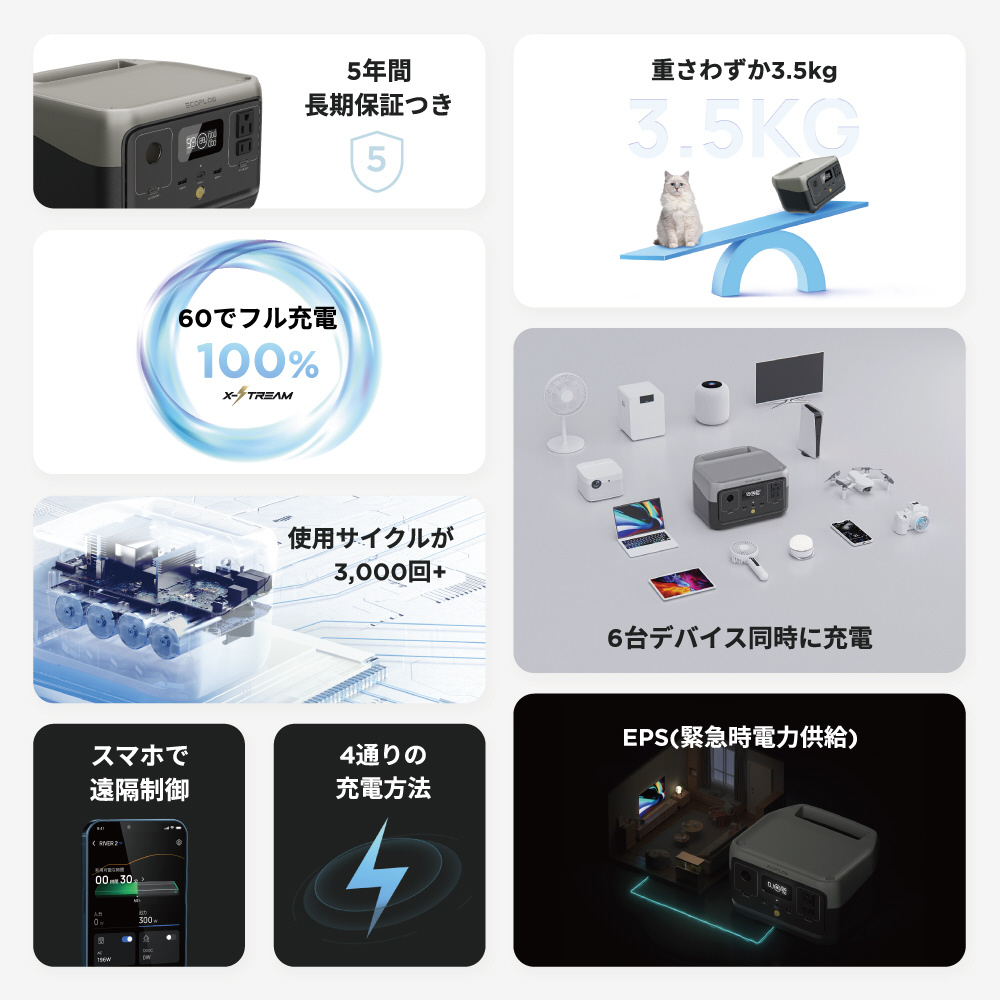 EcoFlow独自のX-Stream技術を採用した「RIVER 2」シリーズは、「RIVER 2」「RIVER 2Max」なら60分、