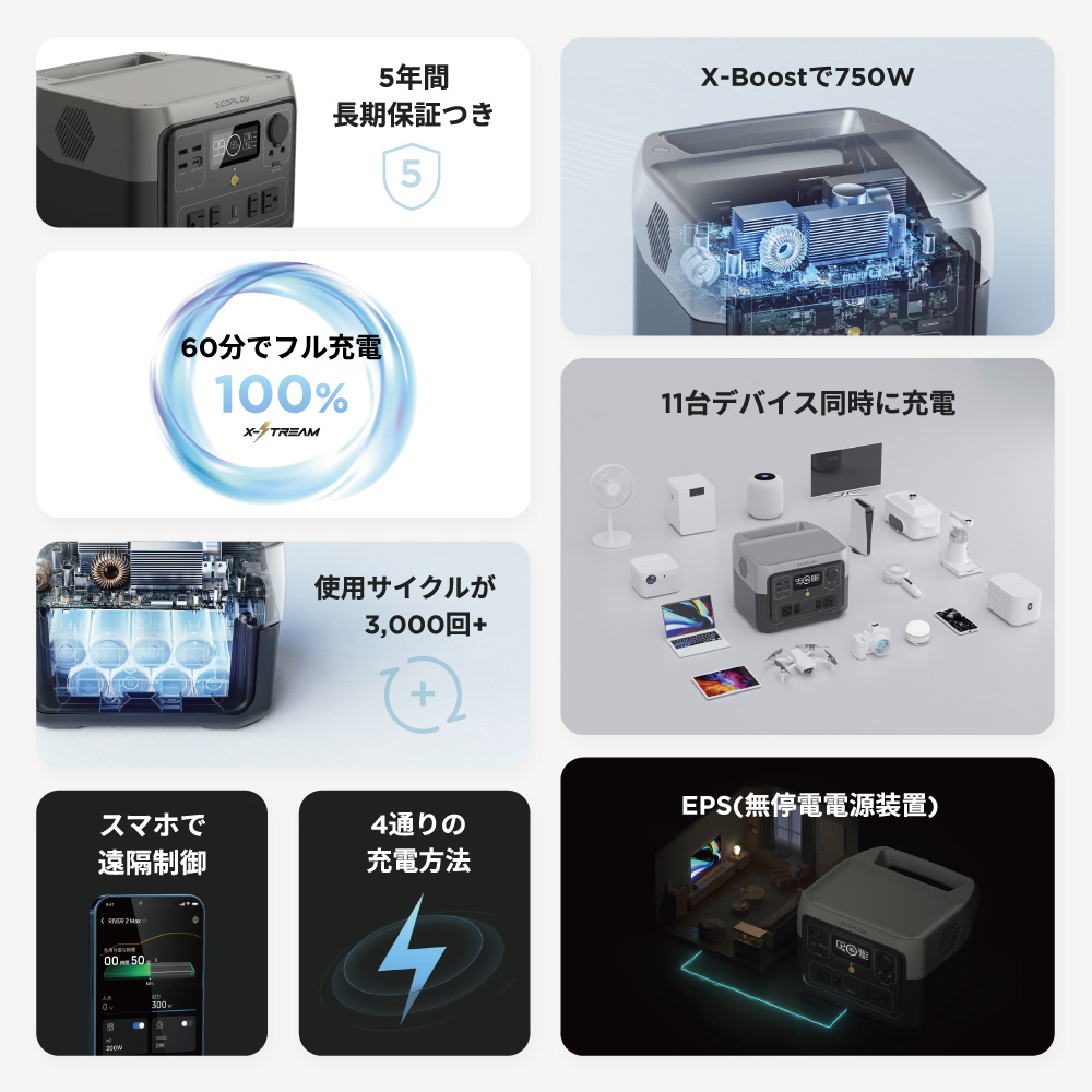EcoFlowを代表する急速充電テクノロジー「X-Stream」によってわずか1時間で満充電可能です。