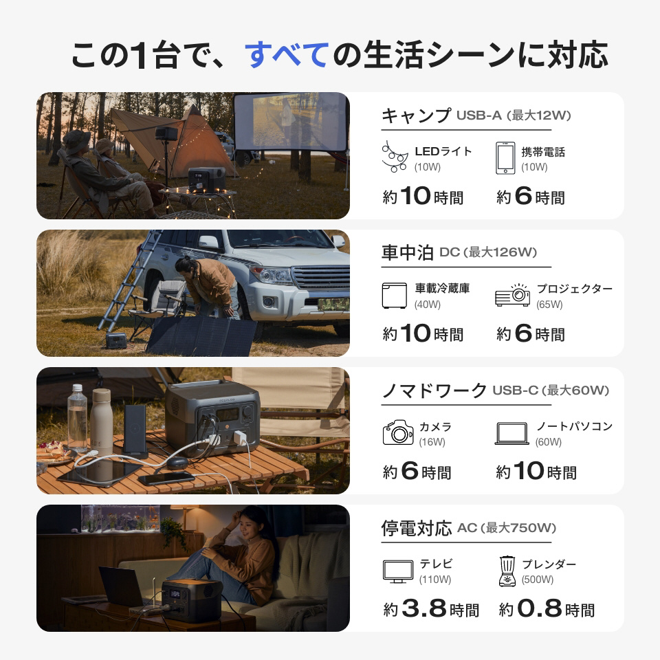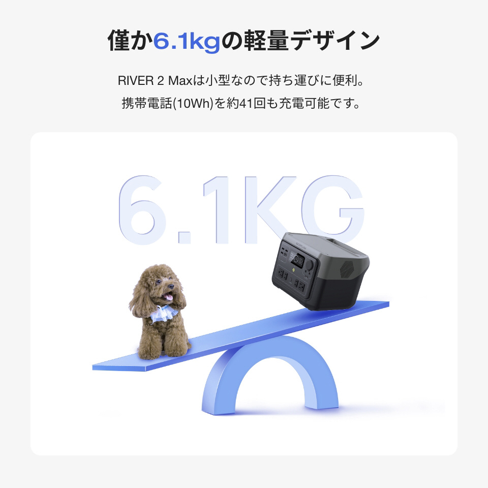 ポータブル電源 RIVER 2 Max ZMR610-B-JP [リン酸鉄リチウムイオン電池 /6出力 /AC・DC充電・ソーラー(別売) /USB Power Delivery対応]