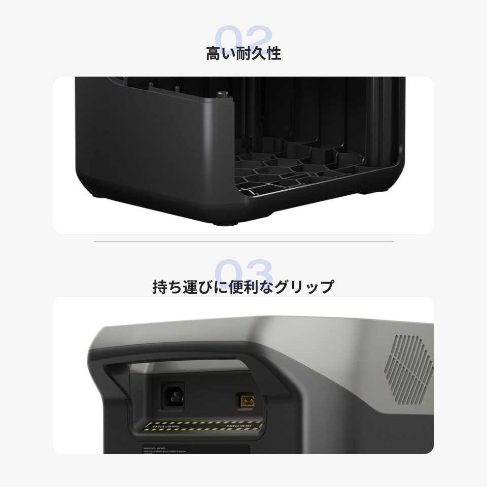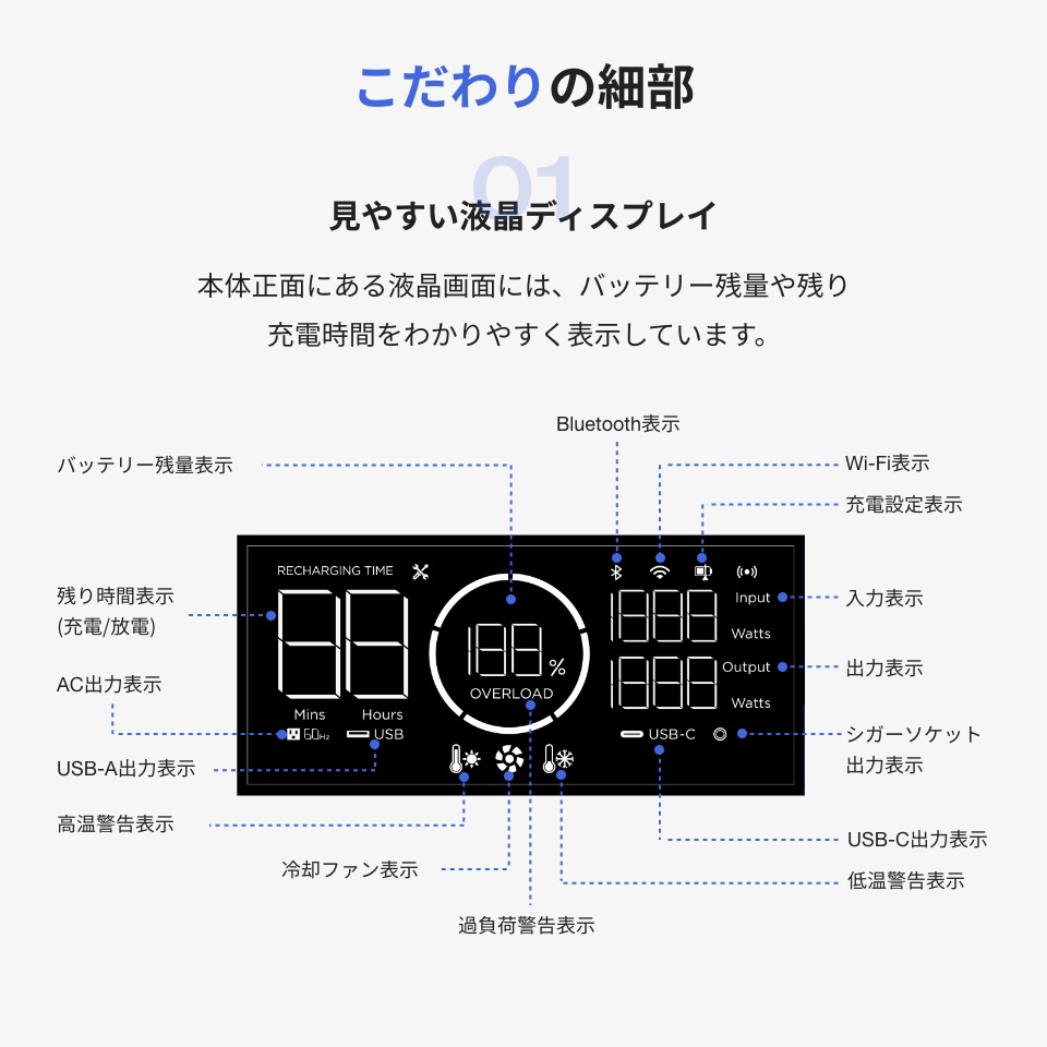 リン酸鉄リチウムイオン電池を搭載しており、バッテリーの充放電を3,000 回以上繰り返し行うことが可能です。
