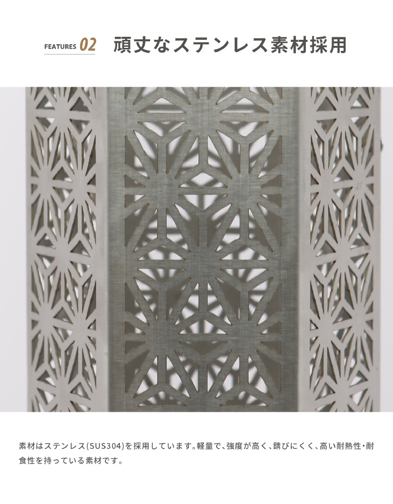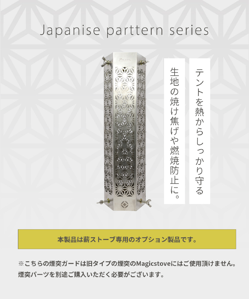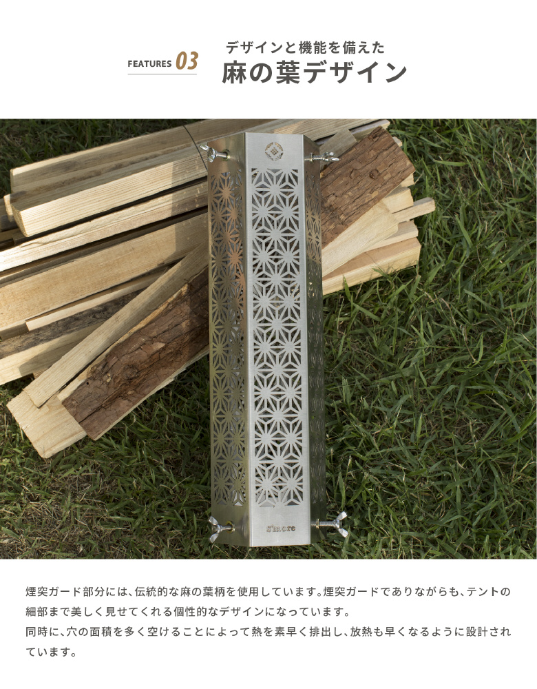煙突ガード部分には伝統的な麻の葉柄を使用しています。