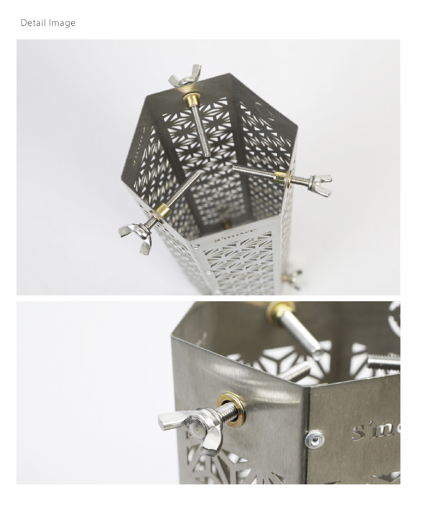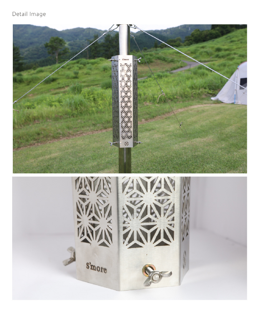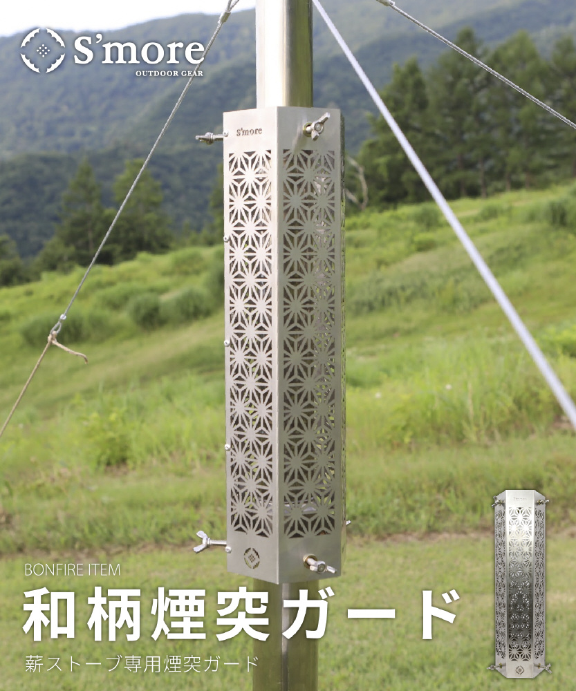 煙突ガードでありながらもテントの細部まで美しく見せてくれる個性的なデザインになっています。