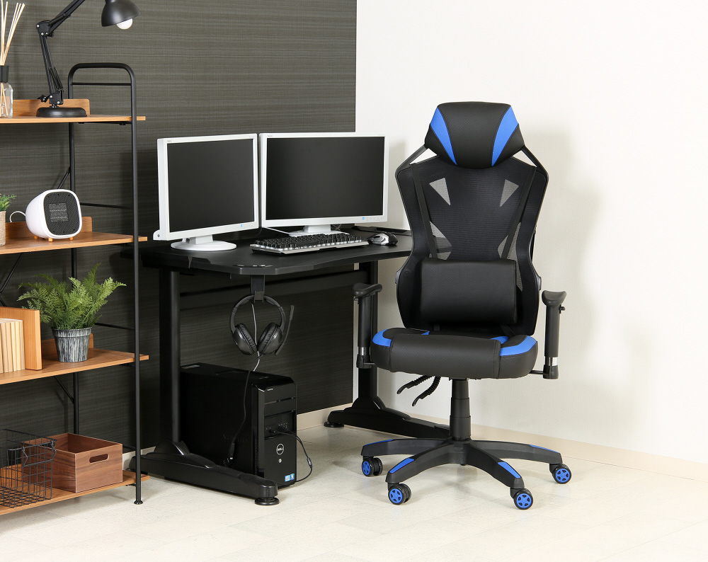 【送料無料】 19428 ゲーミングチェア [W685xD655xH1180〜1255mm] レイズ (メッシュ) ブルー