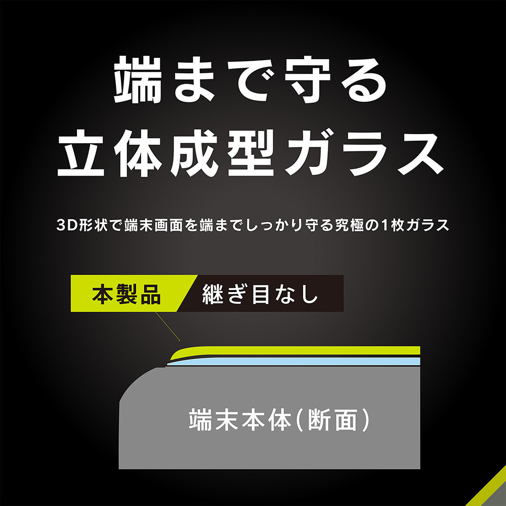 端末との一体感が美しい、端をなめらかに加工した全面保護のガラスプロテクター。ブルーライトを約35%低減する目にやさしい高透明タイプ。