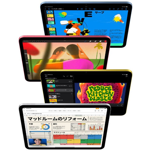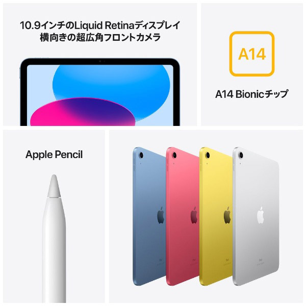 iPadがカラフルに生まれ変わり、かつてないほど万能になりました。オールスクリーンのデザイン。10.9インチのLiquid Retinaディスプレイ1。4つのポップなカラー。作りたいものを作ったり、友だちとつながったり、いろいろな課題をこなすためのパワフルな方法もたくさん。