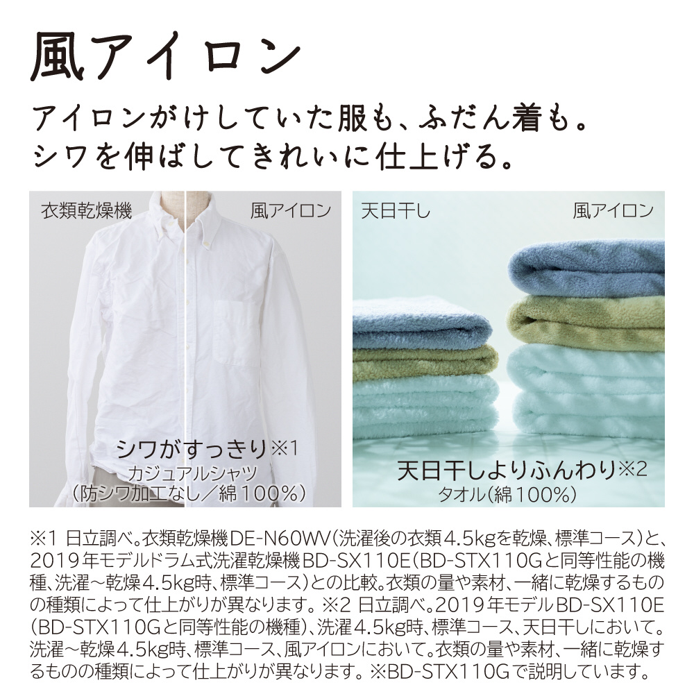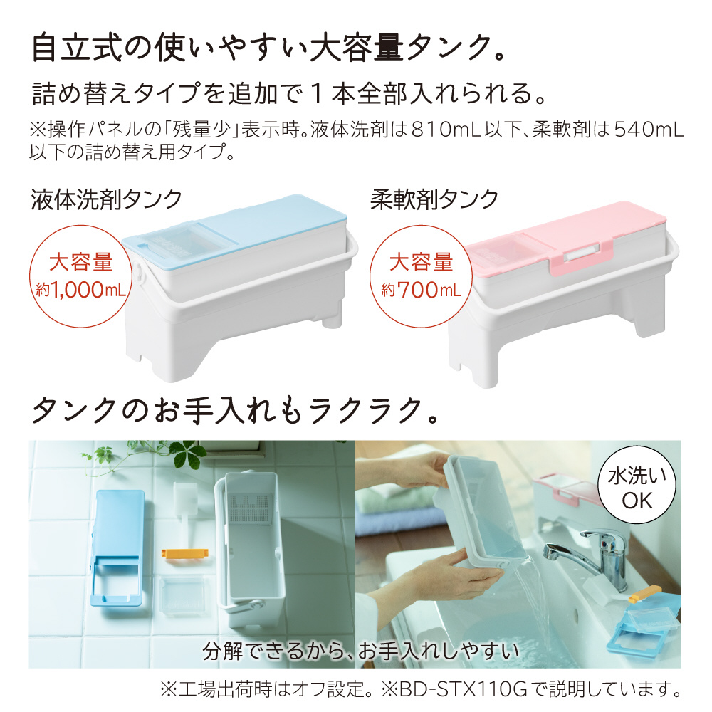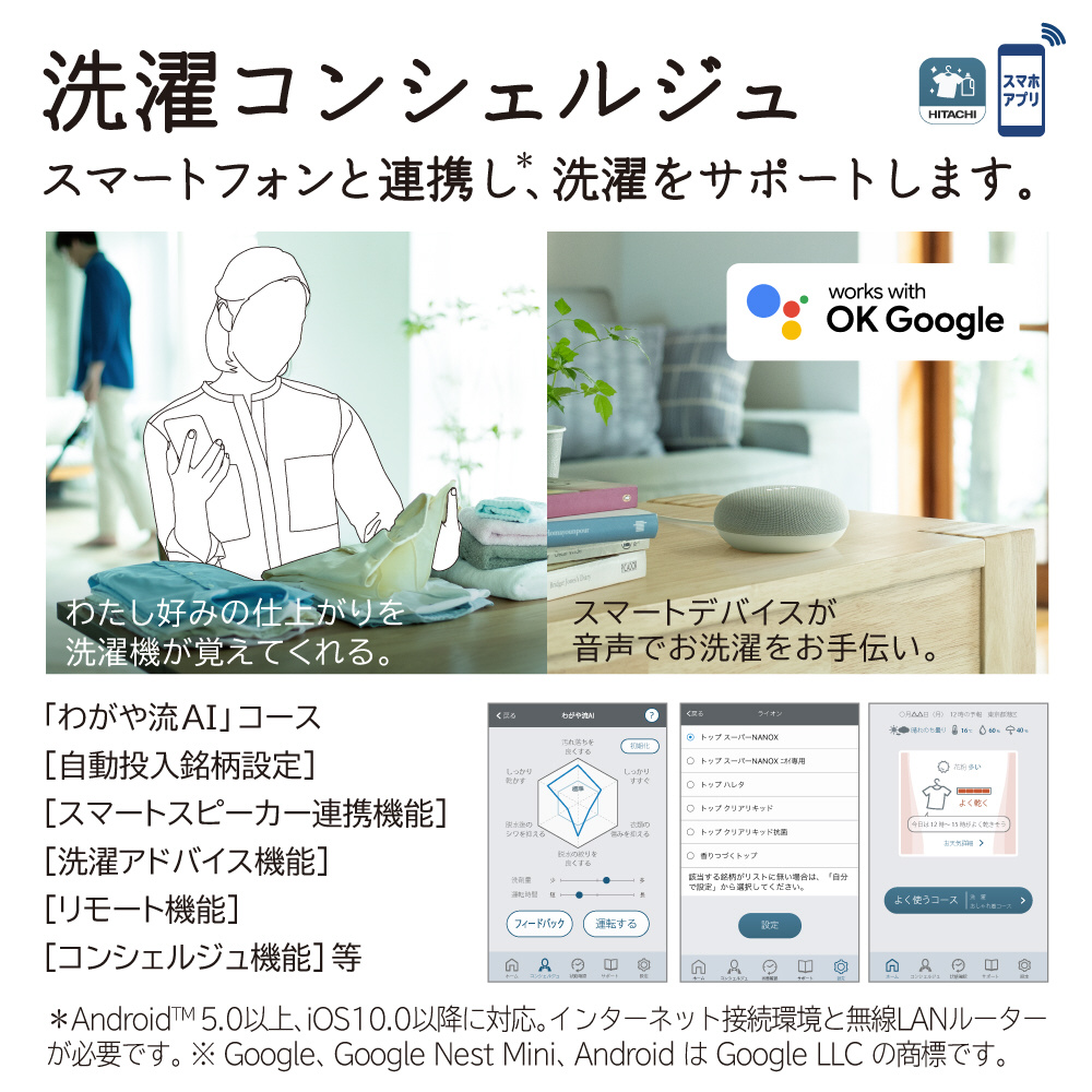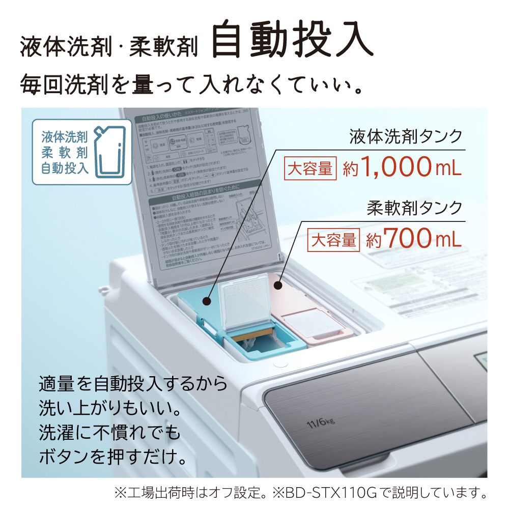 「風アイロン」でシワを伸ばしてきれいに仕上げる。「AIお洗濯」でかしこくきれいに洗う。適量を自動投入「液体洗剤・柔軟剤自動投入」。