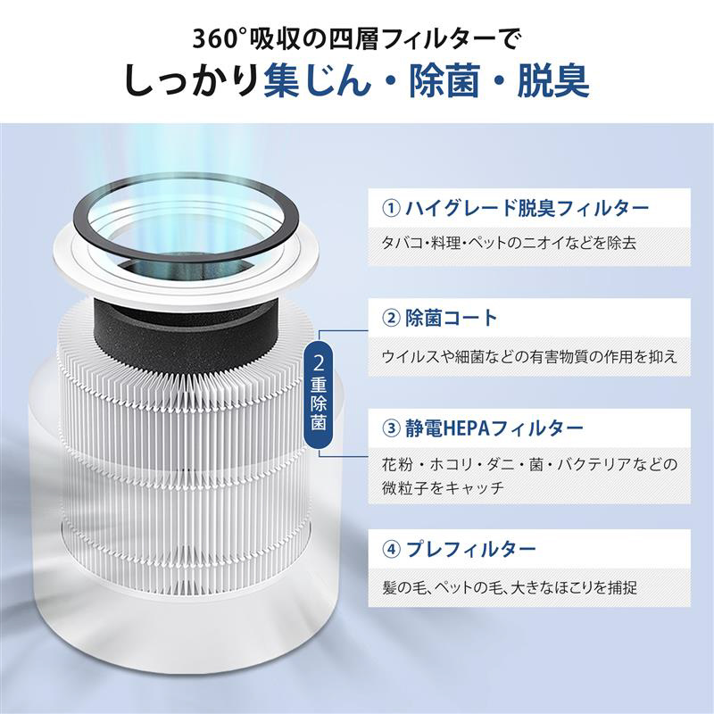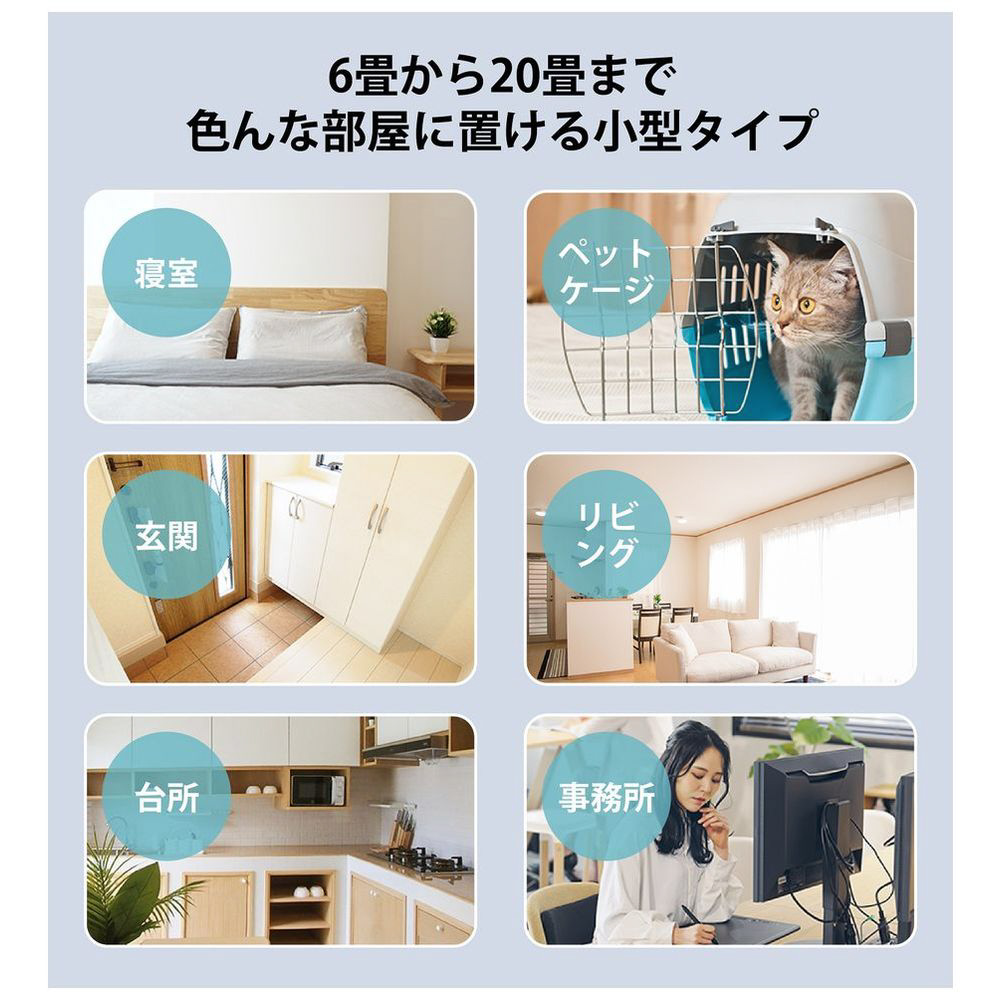 5層ろ過・2層除菌で、空気の悩みから解放!小型でも空気清浄能力は20畳まで対応。
