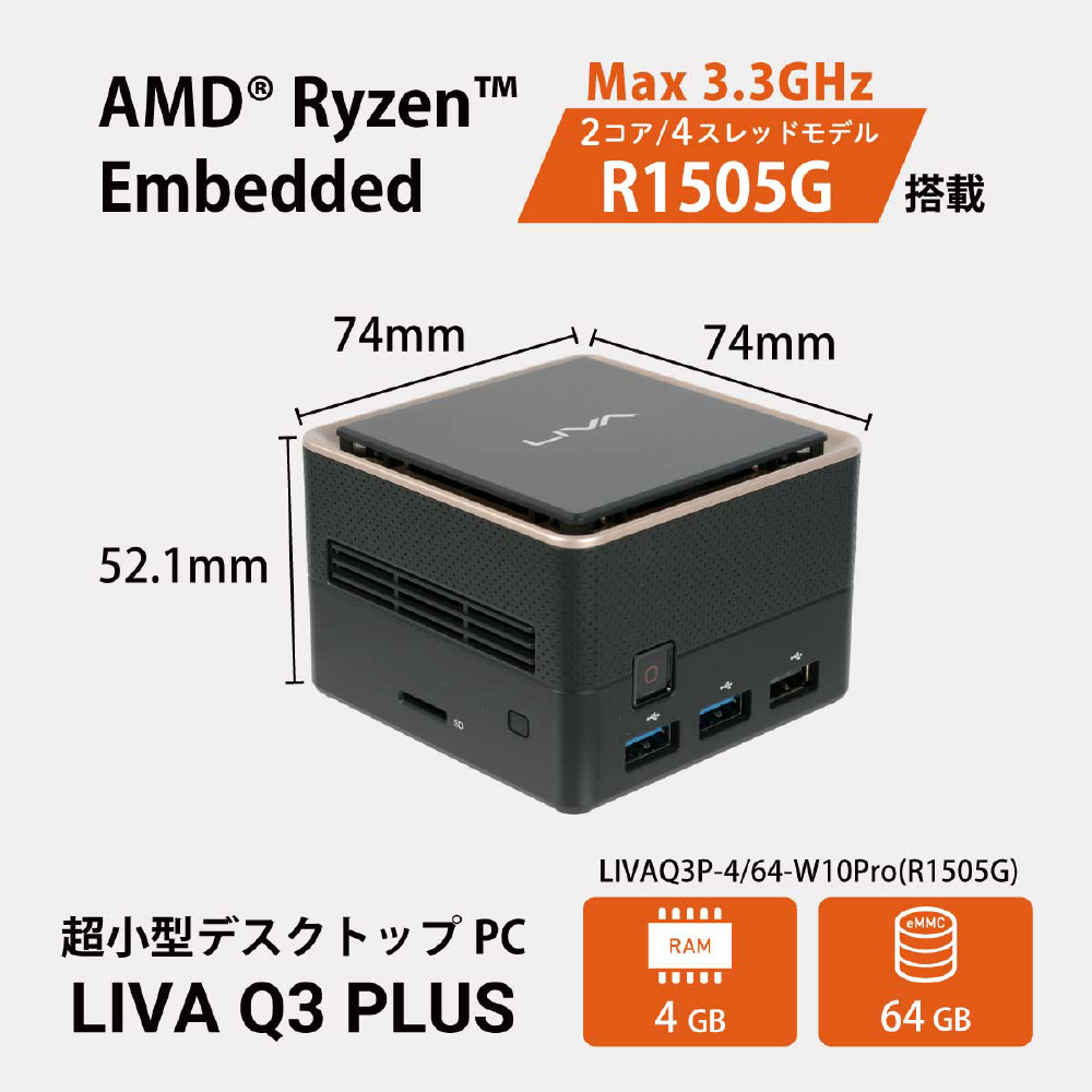 LIVAQ3P-4/64-W10Pro(R1505G) デスクトップパソコン LIVA Q3 PLUS [モニター無し /AMD Ryzen Embedded /メモリ:4GB /eMMC:64GB /2022年10月モデル]