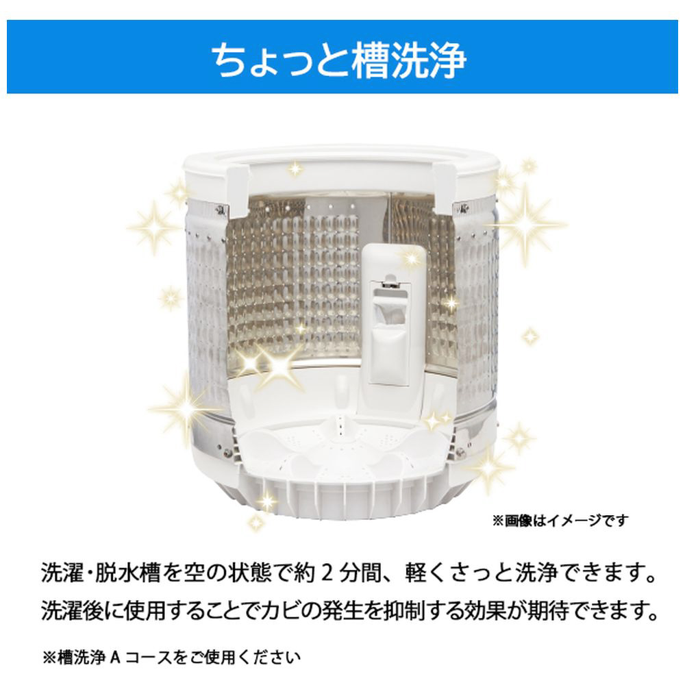 洗濯・脱水槽を空の状態で約2分間、軽くさっと洗浄できます。洗濯後に使用することでカビの発生を抑制する効果が期待できます。