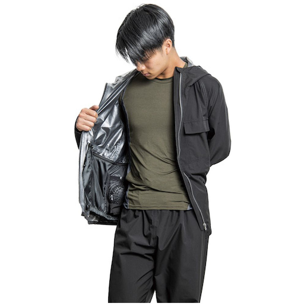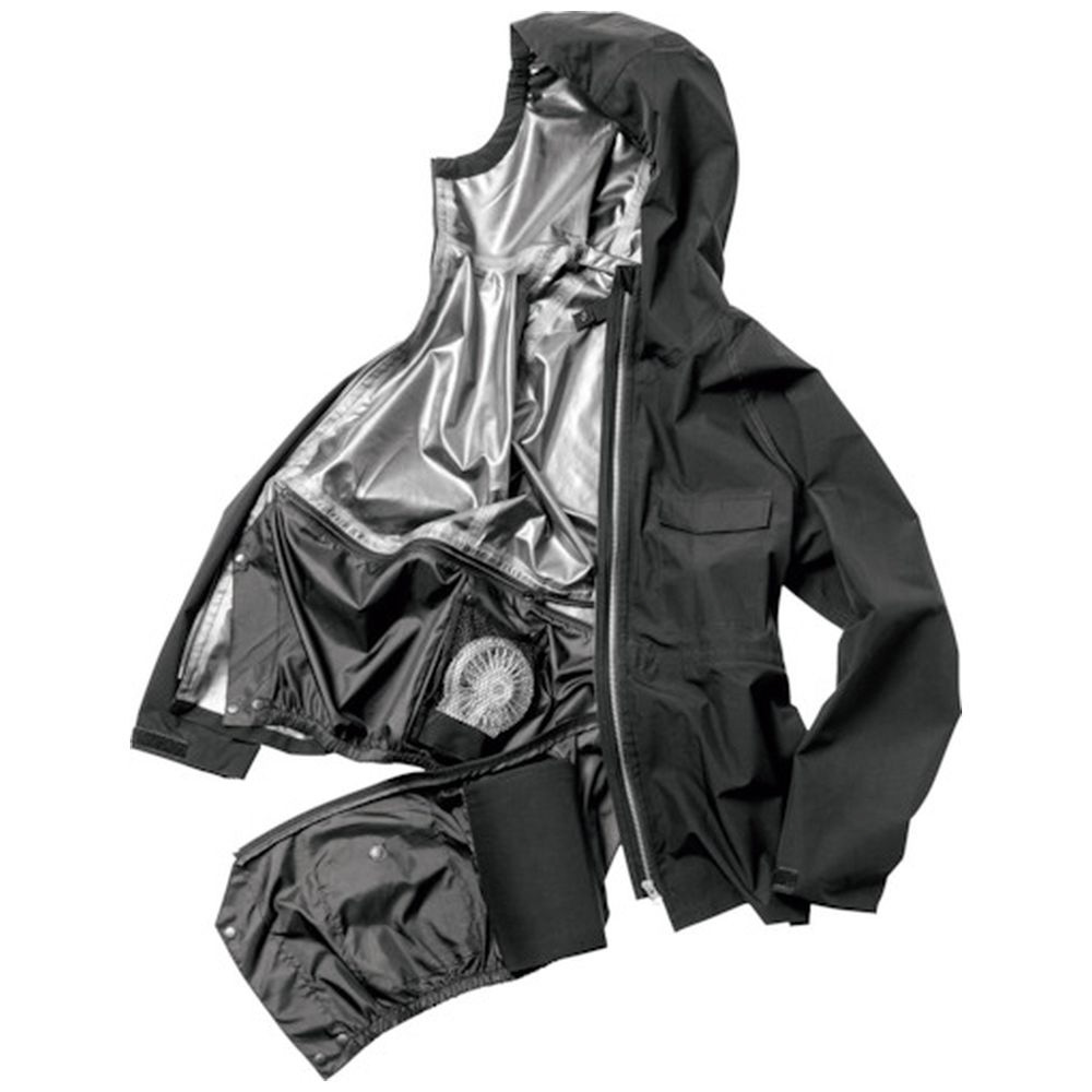 ●空調ファン対応のレインスーツです。●ファンユニットは取り外して通常のレインウエアとして着用可能です。●ベンチレーション、透湿素材に次ぐ、第三の快適性レインウェアです。●レインウェアの最大の悩み「蒸れ(結露)」を解消しました。●季節に合わせてファンが取り外せて一年中着れます。