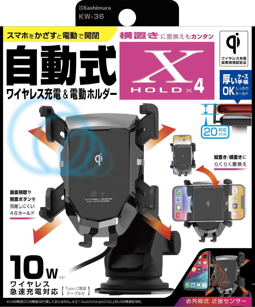| 商品名 | QI自動開閉ホルダー 4アーム 手帳対応 吸盤取り付け KW-36 |