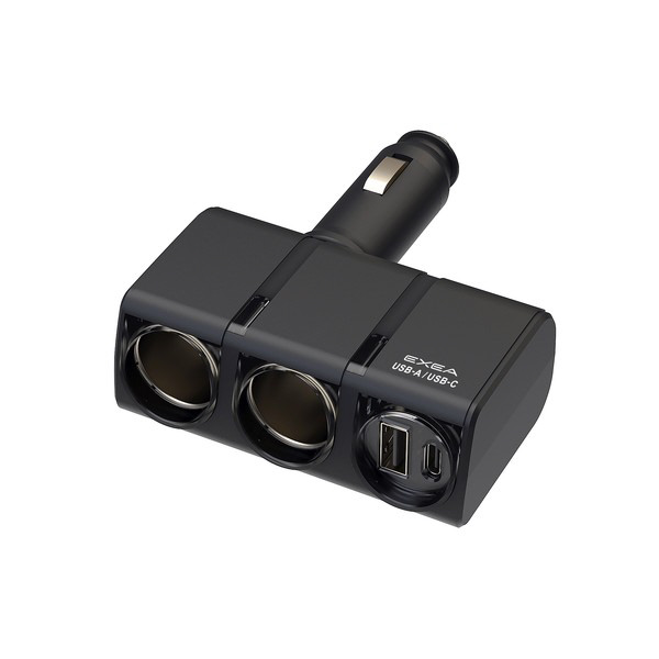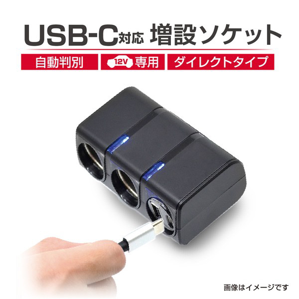12Vの2連ソケットとUSB-CとUSB-Aのポートを備えた増設ソケットです