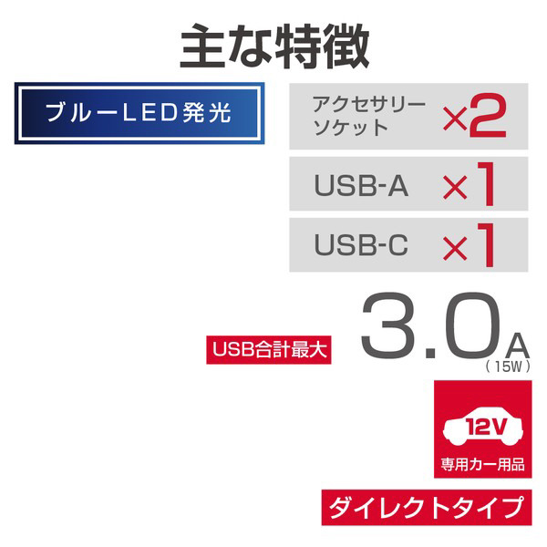 ●12Vの2連ソケットとUSB-CとUSB-Aのポートを備えた増設ソケットです。