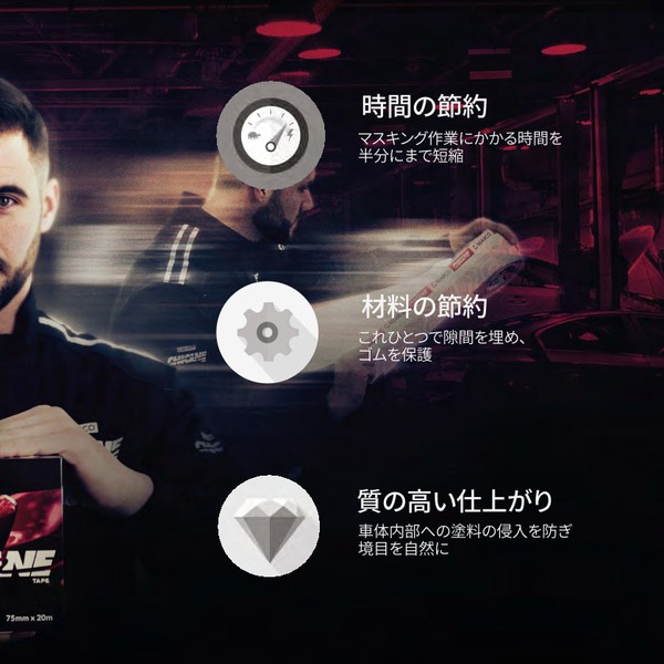 ●自動車のマスキング作業を飛躍的に革新させる画期的なマスキングテープ