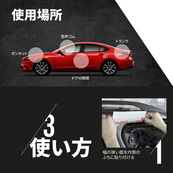 【使用箇所】・・・ボンネット、窓枠ゴム、トランク、ドアの隙間など特にゴムがある場所