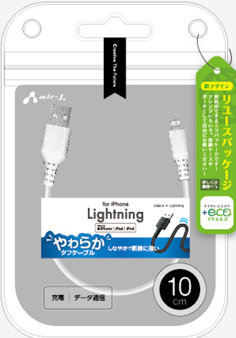 【+ECO】くねくねLightningケーブル 10cm ホワイト MUJELPW10