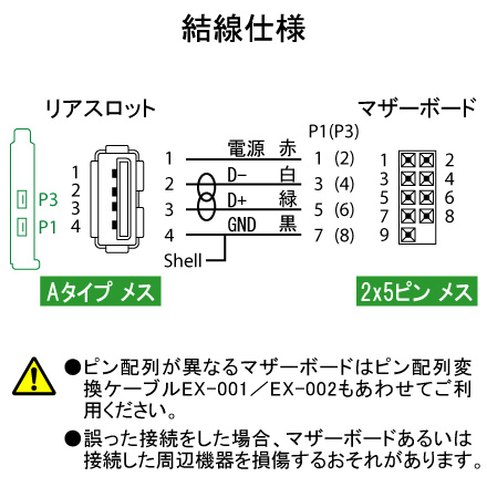 マザーボード上のUSB 2.0ヘッダーからリアスロットにコネクタを延長できます。