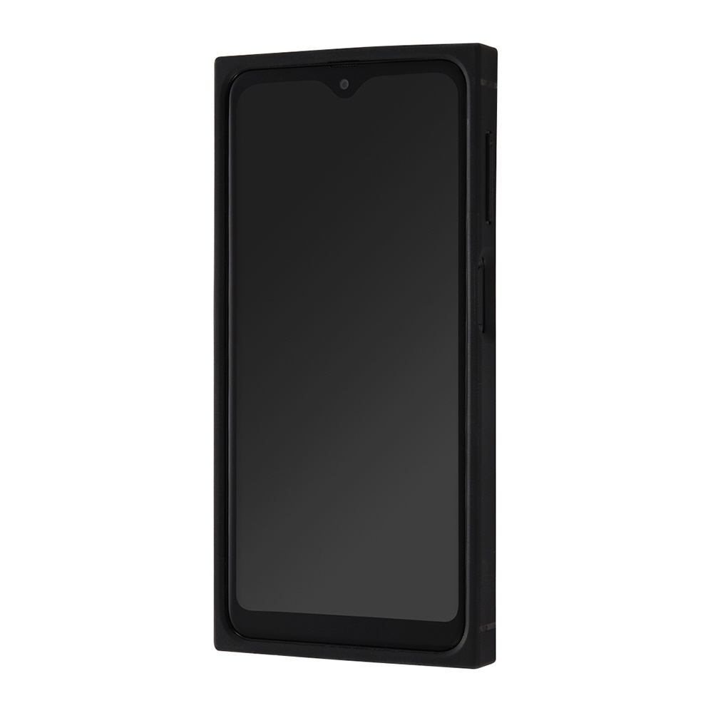 個性的な四角いフォルムと、衝撃に強いTPU素材の側面、薄くて軽く透明度の高いPCパネル を背面にセットした Galaxy A23 5G用 耐衝撃ケース KAKUハイブリッド。端末側面保護、衝撃吸収エアクッション付。