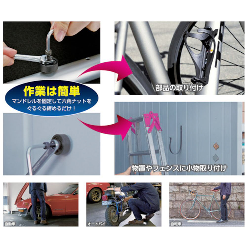 ●手軽にブラインドナットが使える便利キット「ちょっとナッター」「ちょっとナッター2」の交換用部品です。●「ちょっとナッター」「ちょっとナッター2」を使えば、面倒な設定や操作の必要がなく、誰でも簡単にエビナットの取り付けができます。