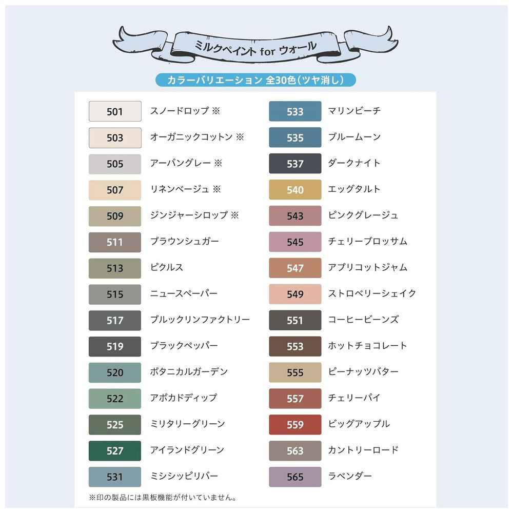 ミルクペイントの色調と、黒板機能をはじめとする6つの高付加価値を搭載した画期的な、室内かべ用のオリジナルペイントです。