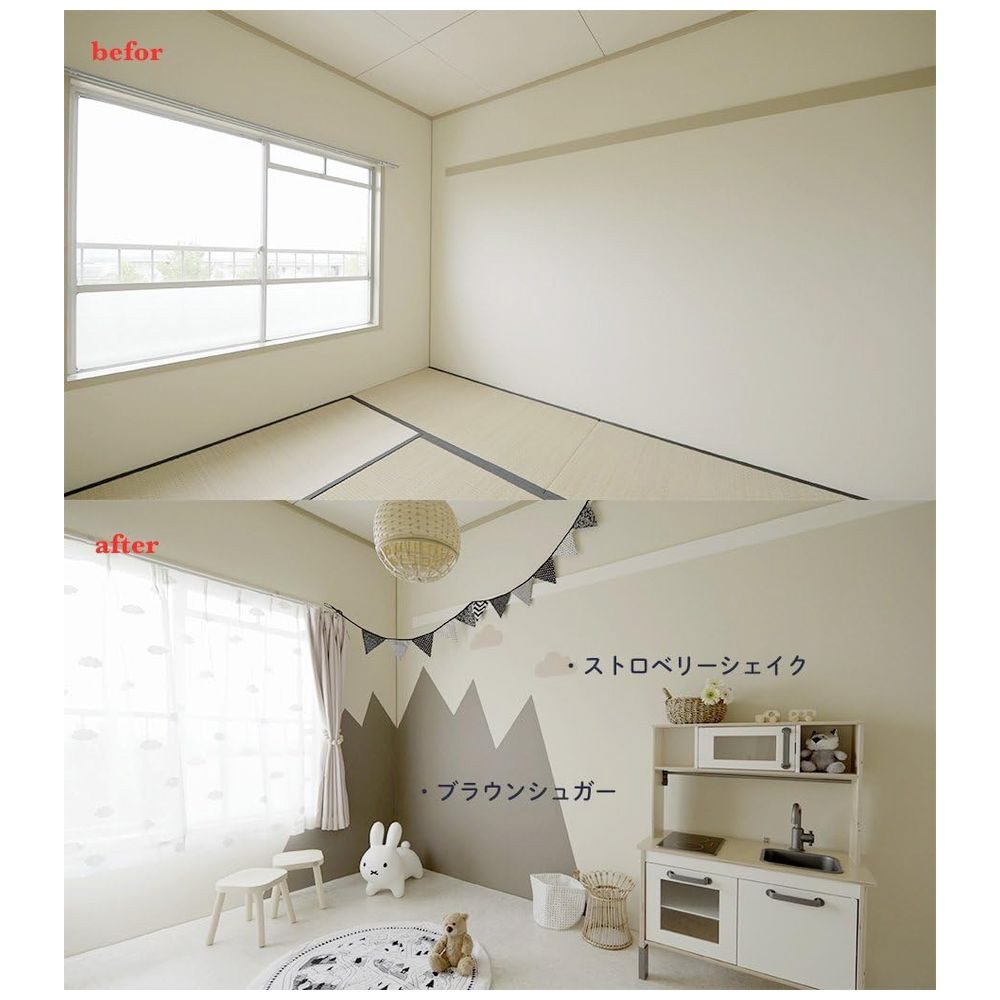 約1m×1mの面積を塗ることができるこのボトルは、お部屋の1コーナーやアクセントカラー、また多色使いなど手始めにちょうどいいサイズ。