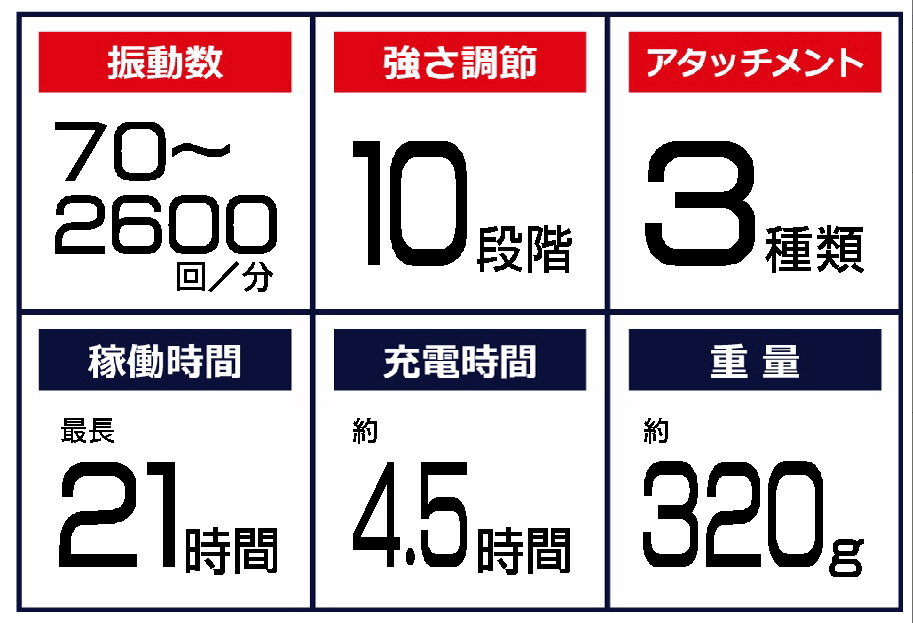 3種の動作モード(タッピング・振動・たたき)から自分好みに自由に選択が可能です