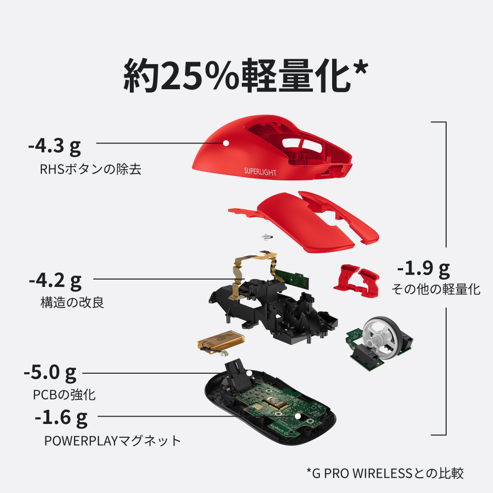 ゲーミング マウス PRO X SUPERLIGHT レッド G-PPD-003WL-RD [光学式 /無線(ワイヤレス) /5ボタン /USB]