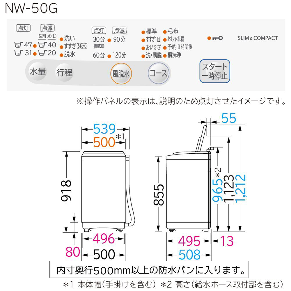 全自動洗濯機 NW-50G-W [洗濯5.0kg /簡易乾燥(送風機能) /上開き]【生産完了品】